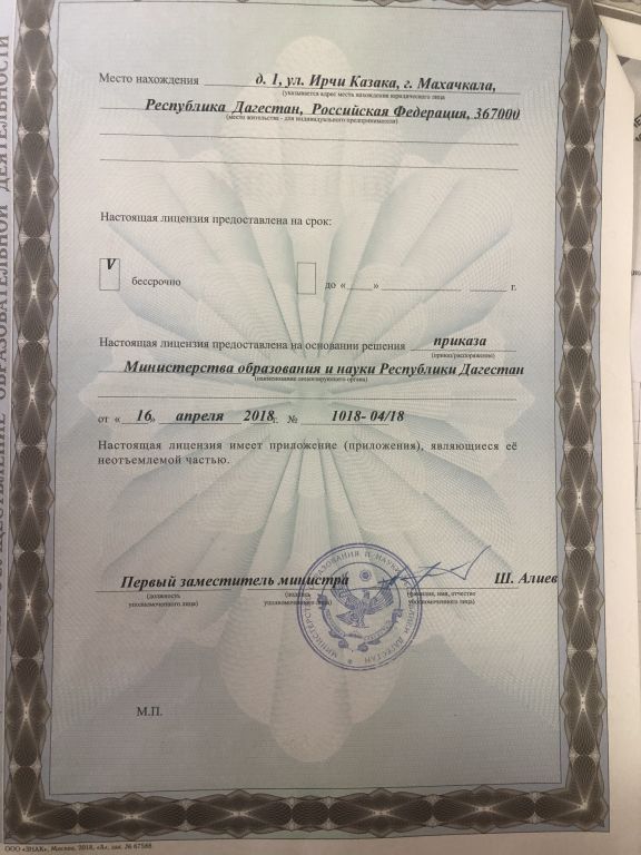 | Адрес местонахождения образовательной организации* | 367000 РД г. Махачкала, ул.И.Казака 1 |