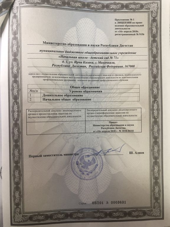 МКУ "Управление образования" г. Махачкала г. Махачкала ул. Братьев Нурбагандовых, 1, Контактный телефон учредителя: (8722) 67-06-08 |