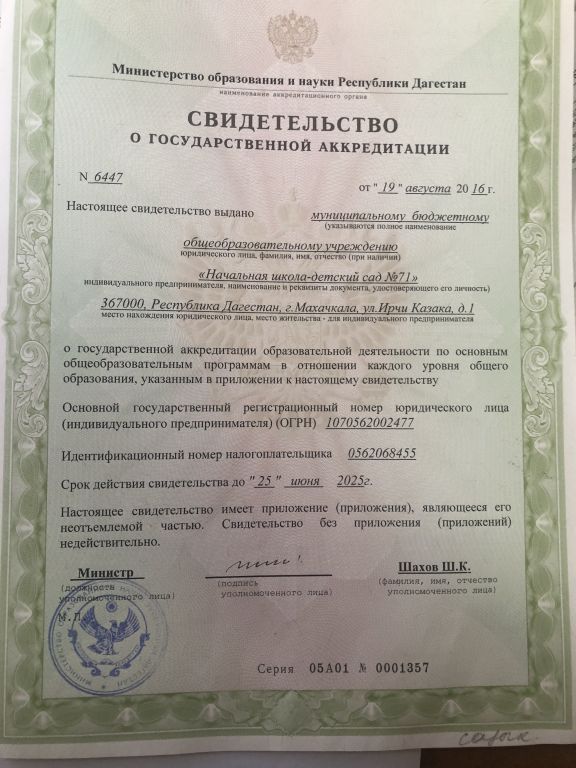 до 19.00 рабочие дни: понедельник - пятница выходные дни: суббота - воскресенье Республика Дагестан, 367000 г.Махачкала, ул.И.Казака , 1, тел.: (8722) 67-63-40; 67-63-58 E-mail: mkl-mdou71@yandex.r INSTAGRAM:mdou_71_mkala |